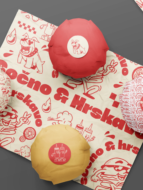 Za Sočno & Hrskavo, lokalni brend burgera koji spaja domaći ukus i urbani duh, radili smo cjelokupni branding – od ideje do omota. Naš pristup bio je strateški i hrabar: da brend postane prepoznatljiv i van ukusa – kroz boje, oblike, karaktere i ton komunikacije.