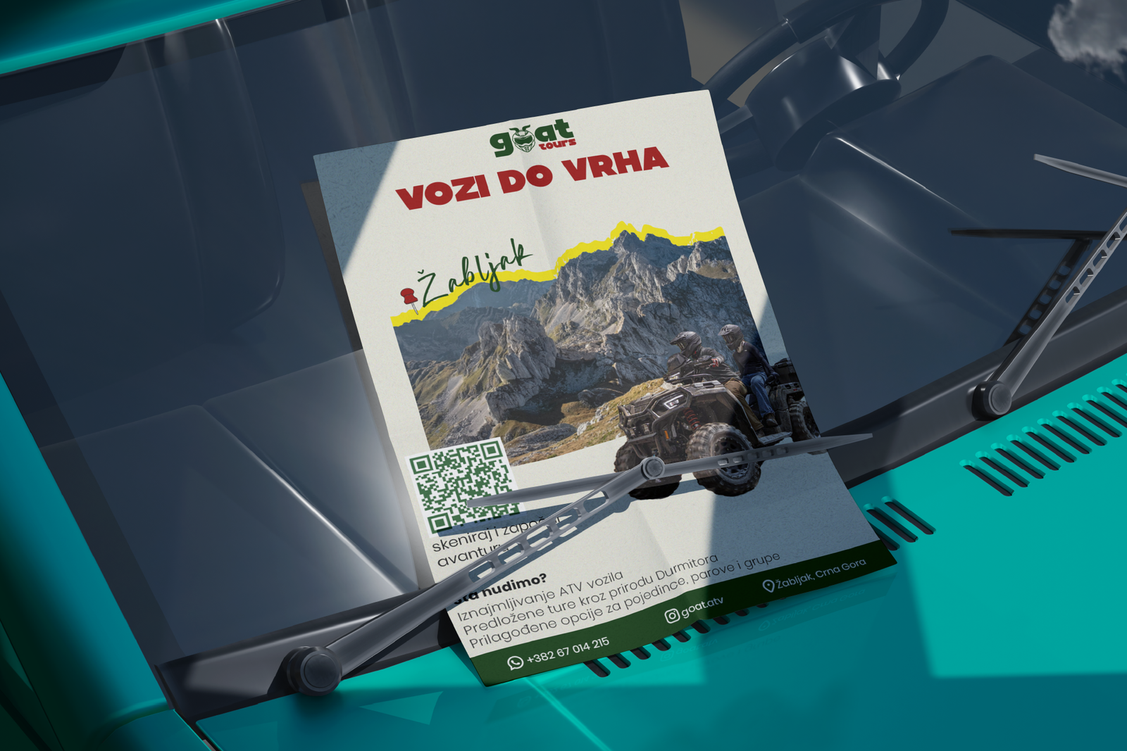 Za GOAT ATV smo radili kompletan vizuelni identitet – od dizajna logotipa, brendiranja ATV opreme, do promo materijala za štampu.